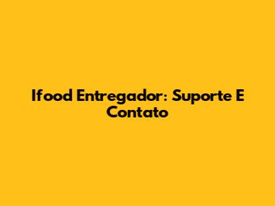 Ifood Entregador: Suporte E Contato