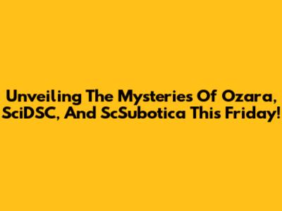 Unveiling The Mysteries Of Ozara, SciDSC, And ScSubotica This Friday!