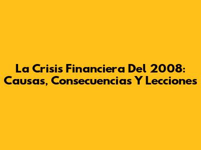 La Crisis Financiera Del 2008: Causas, Consecuencias Y Lecciones