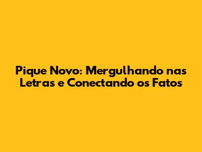 Pique Novo: Desvendando As Letras E Conectando Os Fatos