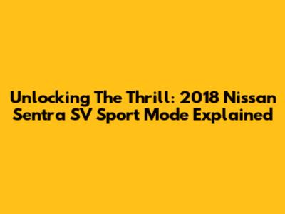 Unlocking The Thrill: 2018 Nissan Sentra SV Sport Mode Explained